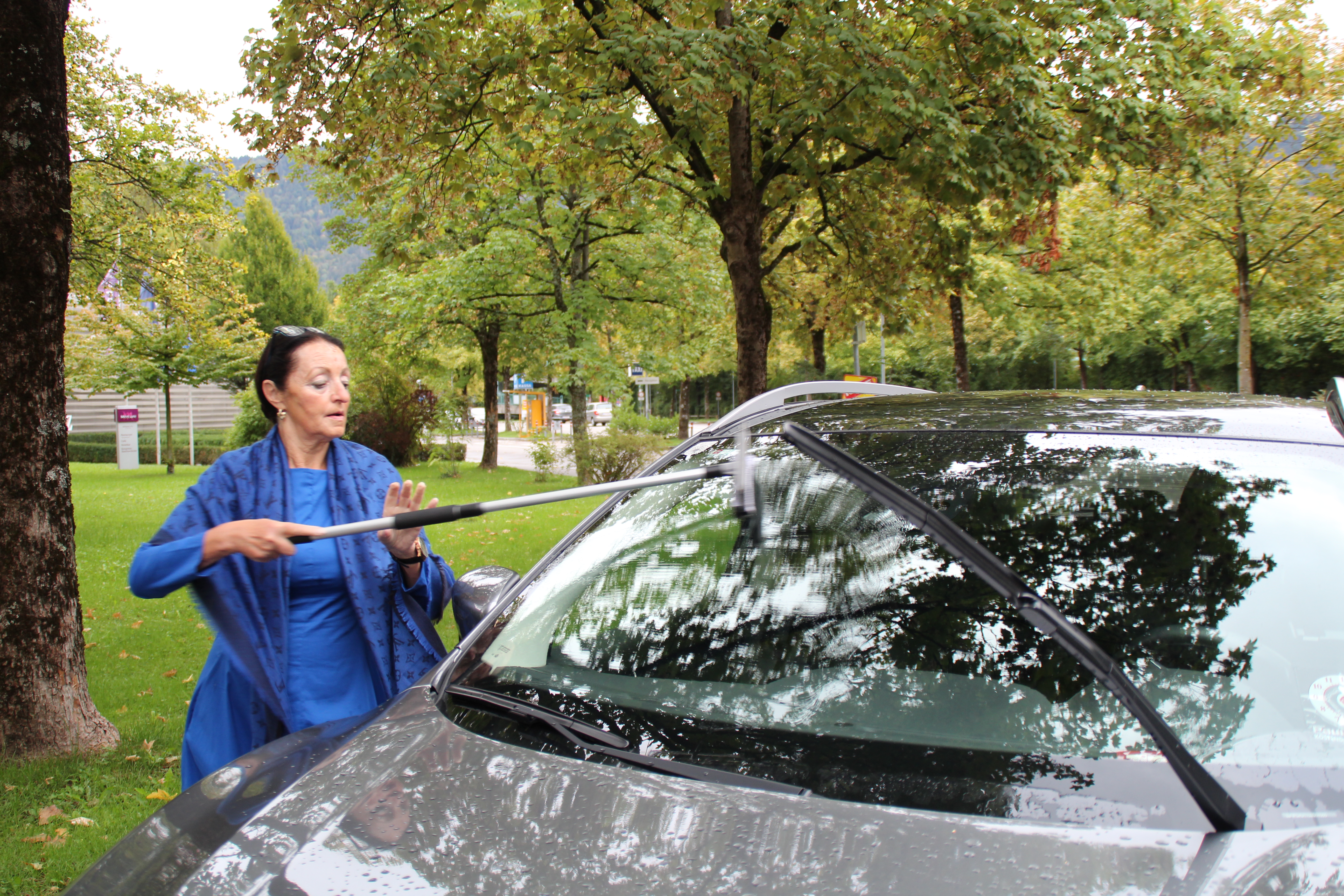 Bild 2: "Die Irmi" ist eine perfekte und ideenreiche Gastgeberin, die vor keiner Arbeit zurückschreckt. Die abfahrenden Gäste hatten den sauberen "Durchblick" bei der Heimfahrt, dank Irmi.