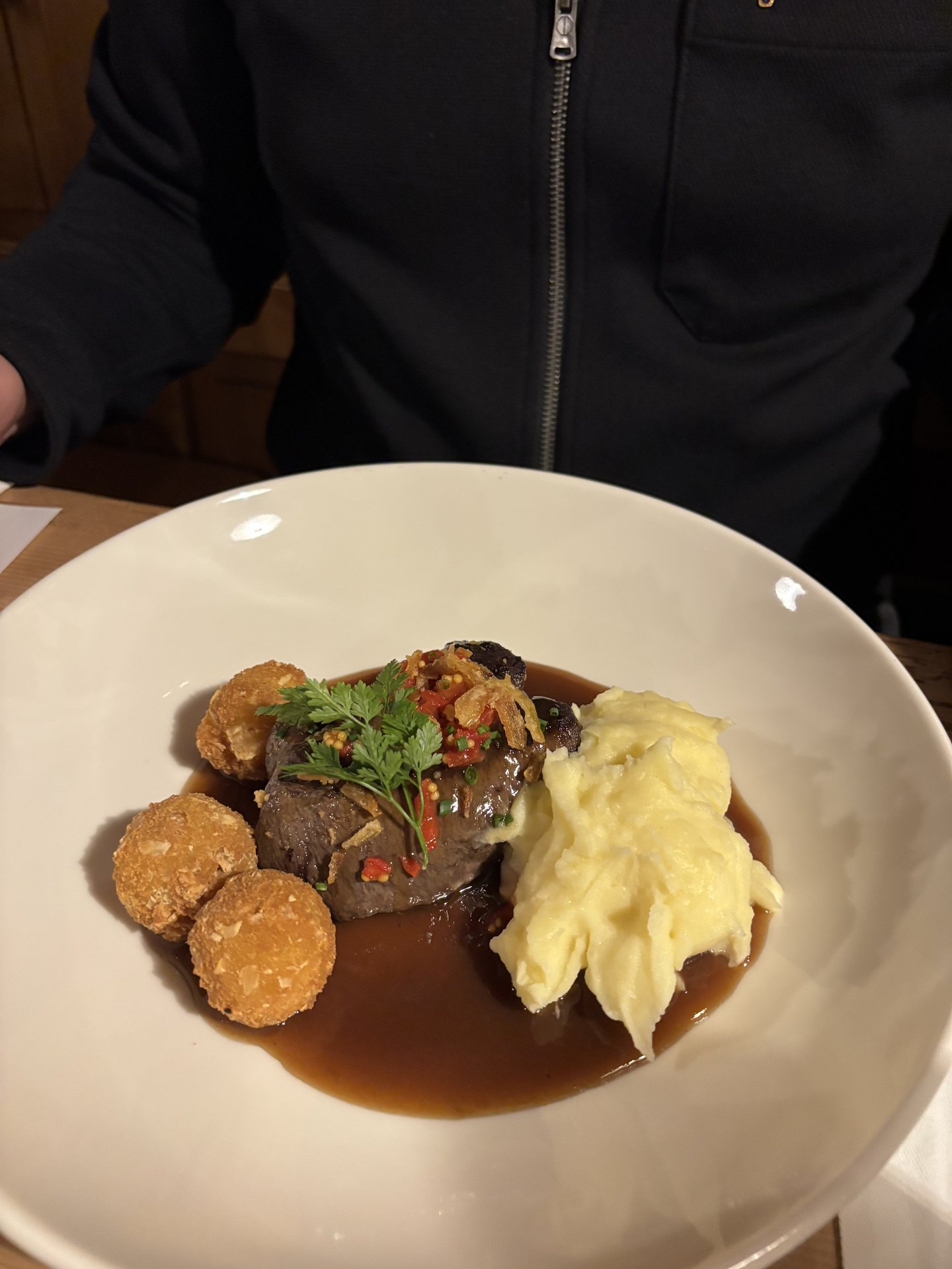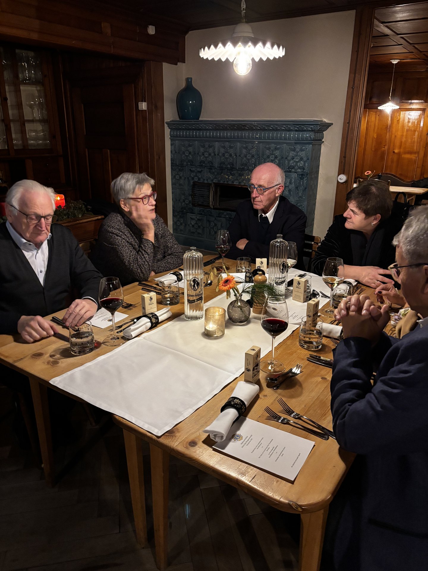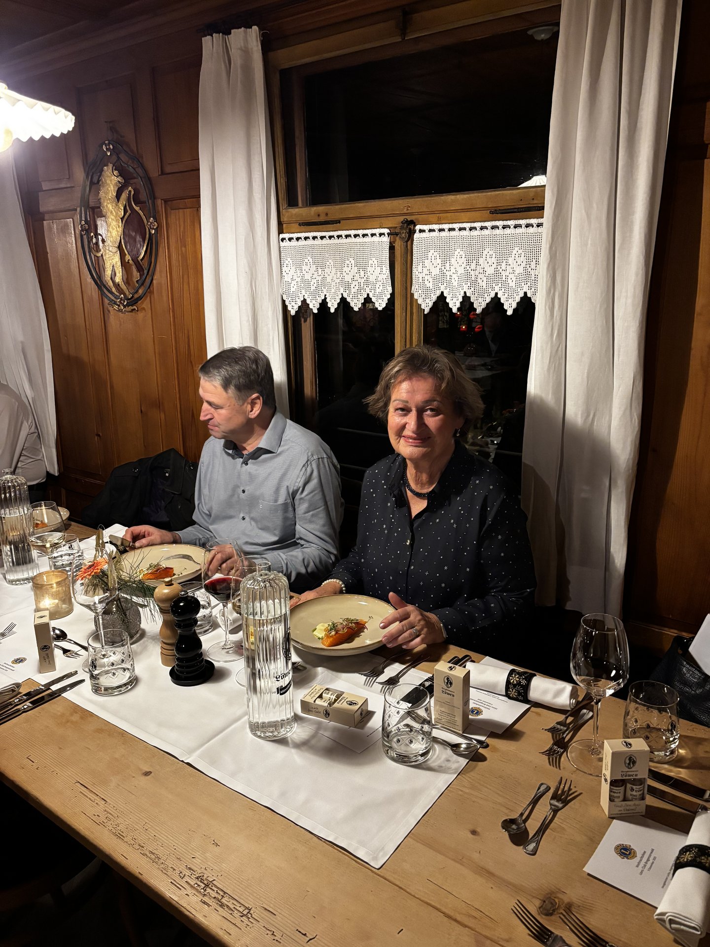Anschließend wechselten wir in die traditionsreichen Stuben des Löwen. Liebevoll dekorierte Tische, ein exzellentes Menü – vom hausgebeizten Lachs über zarte Steaks bis zum Dessert – begleitet von einer hervorragenden Weinauswahl – verwöhnten uns rundum.